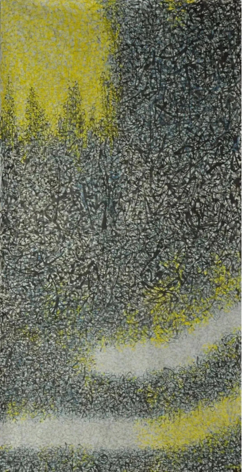 陈石在个展“心随意动”中展出的系列作品,源于意识流天马行空般的创想。在作品中,他不去定义任何东西,不去定义画种、材料、表达主题等等,他试图在有限的创作中突破无限的规矩的束缚,展现主体当下的最为直接的感受。柔软的材料的运用,以及抽象柔软的线条语言与画面表现,正好契合于其心境的表达与情感的抒发。正如此次展览主题“心随意动”,一方面,为充分摆脱专业技法的束缚,他甚至以左手绘制,在宣纸方寸之间实现无意识状态的自由。