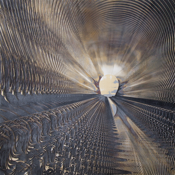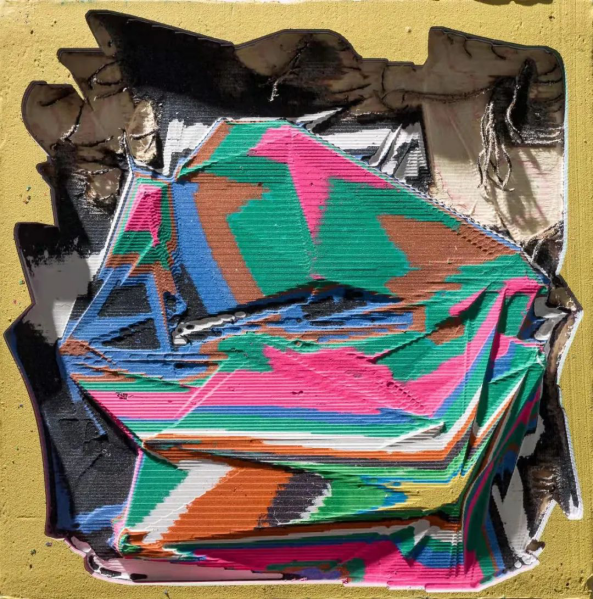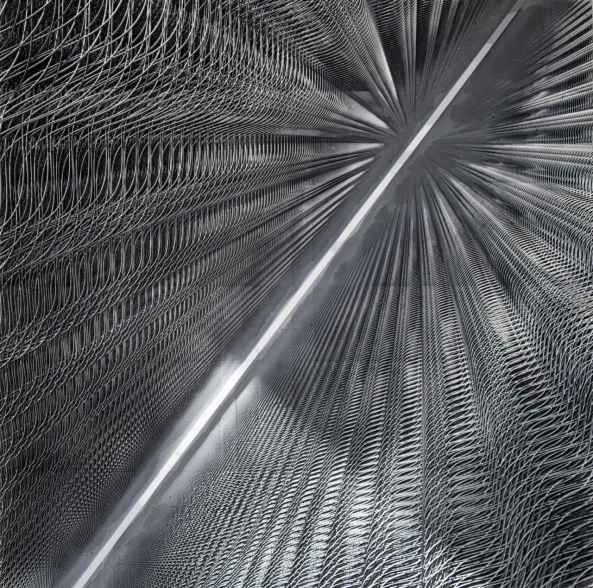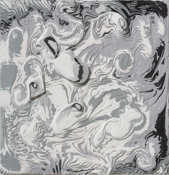 让物质归于客观、中立,还原本质属性,对艺术家来说是一种考验控制力的创作情绪,就如同艺术家有意识地将个人情感融合在丙烯石膏颜料的混合物中,控制其不外化,而任由机器将其同创作材料一起剔除和抹去,形成物质新秩序。