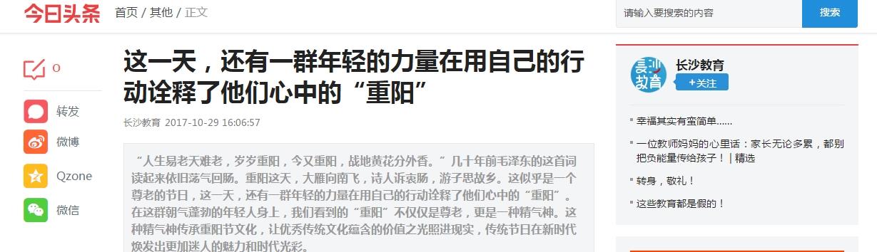 做一件小事🚾,献一片真心。1028日为重阳节,为弘扬中华孝亲敬老传统美德,增强青年学生社会责任感☯️,长沙市信息职业技术学校展开了升旗仪式👮、主题班会等主题教育营造校园尊老氛围,号召广大学生关注身边的老人,尤其是自己家中的老人。