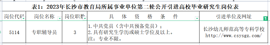 1.《2023年长沙市教育局所属事业单位第二轮公开引进高校毕业研究生岗位表》