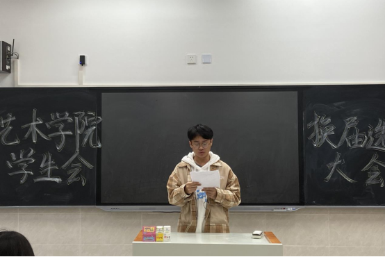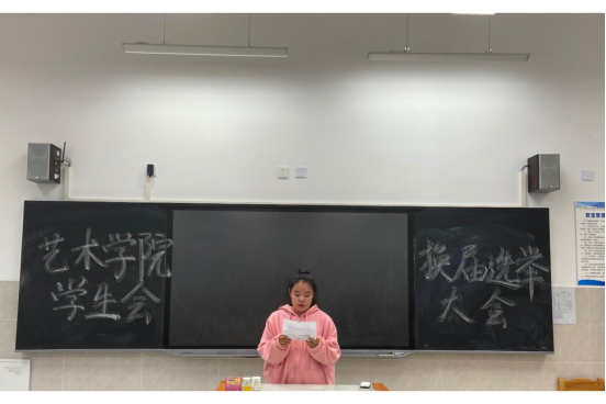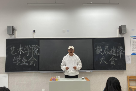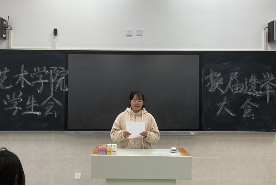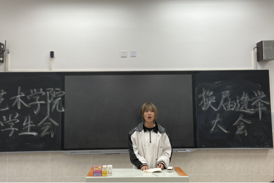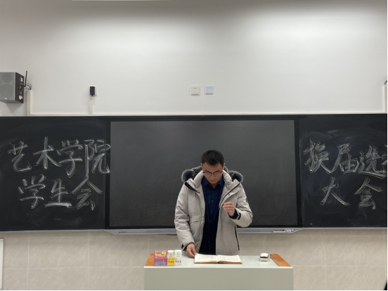 2022年11月22日中午12:30,艺术学院在德馨楼109举行艺术学院第三届学生会换届竞选大会。出席此次会议的有艺术学院副院长戴申林以及艺术学院学生会全体成员。本次会议由宣传部副部长肖灵雅主持。