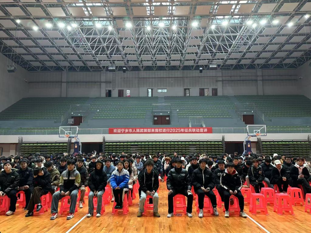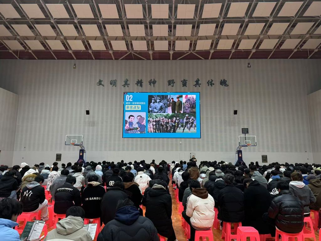 为深入贯彻落实征兵工作有关精神,鼓励和引导大学生积极应征入伍,激发学生报效祖国、献身国防的热情,12月24日下午两点🥷🏻,学生工作与安全保卫处、校武装部在体育馆篮球场隆重举行了在校大学生征兵宣讲活动。此次宣讲会由学生工作与安全保卫处副处长罗星主持,由宁乡市武装部政协委员丁上杰、部长岳俊成及我校军事理论课程负责人刘智勇老师进行宣讲,本次宣讲对象主要为男大学生共六百余人参加此次宣讲活动🤽🅾️。