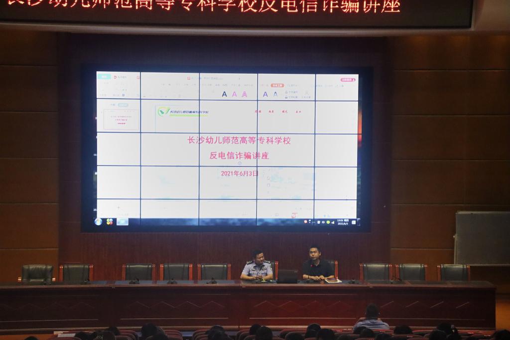 “人民至上、生命至上、安全第一”。根据长沙市教育局《关于印发<2021年“安全生产月”和“安全生产长沙教育行”活动实施方案>的通知》,2021年6月3日,学校邀请雨花区同升派出所来我校开展安全知识讲座。参加本次活动的有:学校安全保卫处负责人王锐,雨花区同升街道派出所刑侦科负责人张衡,以及全体在校大学生。