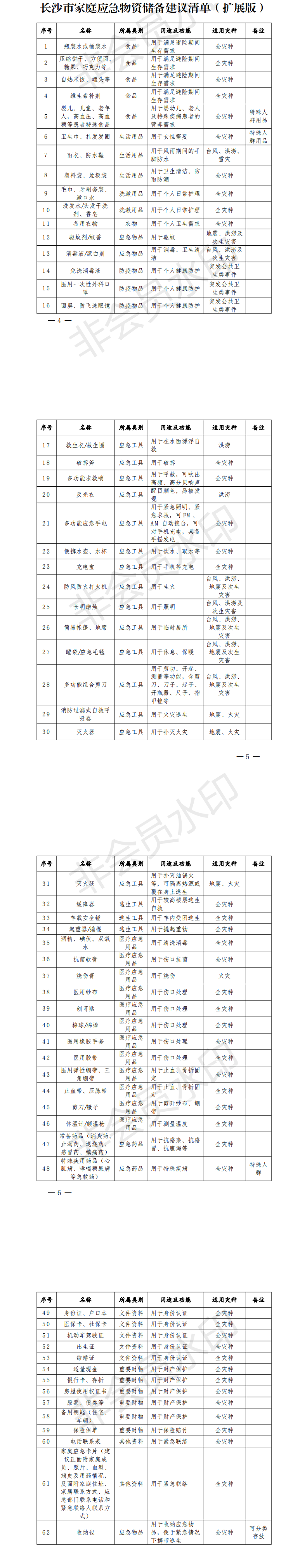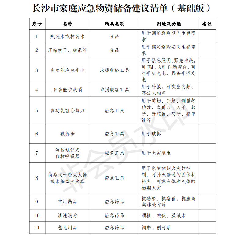 为提升我校全体师生自救能力,减少灾难带来的损失,引导大家积极储备必要的家庭应急物资,时刻准备应对可能发生的自然灾害等突发事件🫴🚑,现将长沙市家庭应急物资储备建议清单“基础版”、“扩展版”提供给大家。
