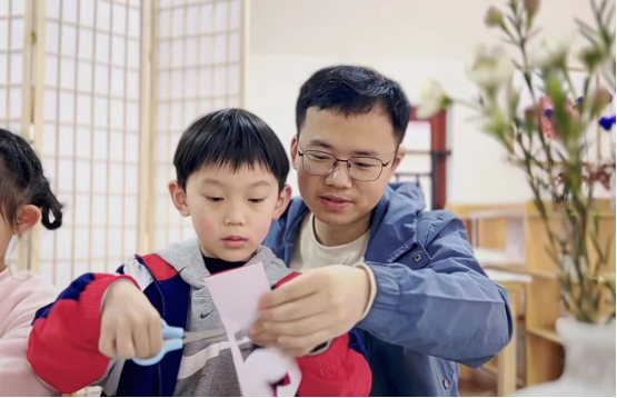 在幼儿园☮️,他历经几年的探索和研究,成功把剪纸艺术融入到园本课程内容中,带领教师将剪纸与幼儿园活动有机融合。