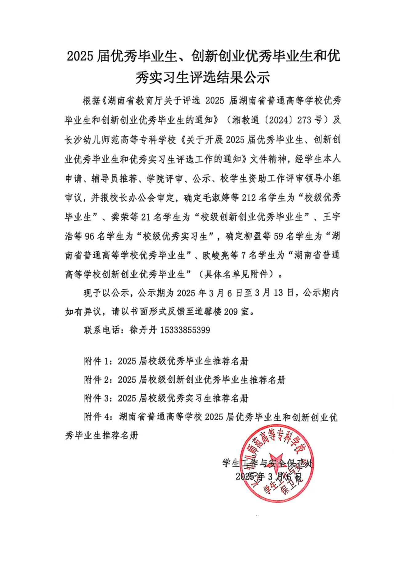 2025届优秀毕业生💢、创新创业优秀毕业生和优秀实习生评选结果公示