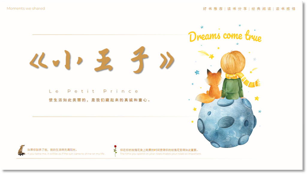 在《小王子》中,作者将儿童敏锐的直觉加以放大🧕🧏🏻♂️,通过小王子对世界的不断认知以达到探寻生命“本真”意义的目的。“作者给予小王子成人的智慧和儿童的纯真,以儿童的身份和视角,出入成人世界,来讲述儿童成长过程中被忘却的曾经遗失的美好”,以达到“诉求现代人的失落的精神家园”的目的🧑🏼🏭。小王子孩童般的无邪视角穿透浅易的生活表象🚬☦️,直达生命内里📵,深入发掘源自灵魂深处的、最淳朴的生命之真。